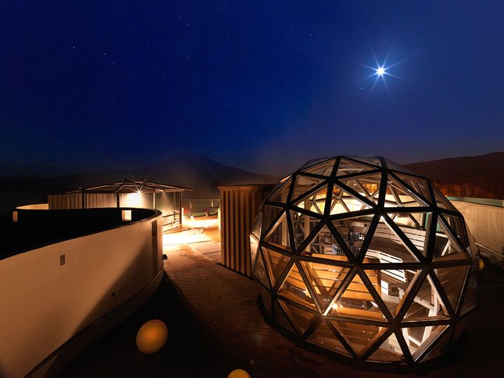 世界初となる断熱複層ガラスによる特殊加工が施された、ドーム型展望サウナ。常にクリアな状態のガラスによって、日中は阿寒湖の大自然を、夜には月や星空を眺めながらサウナを利用できます。