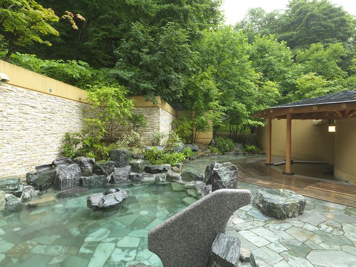 男女それぞれの大浴場にサウナが位置しており、生い茂る森に囲まれた露天風呂スペースで外気にあたることができます。