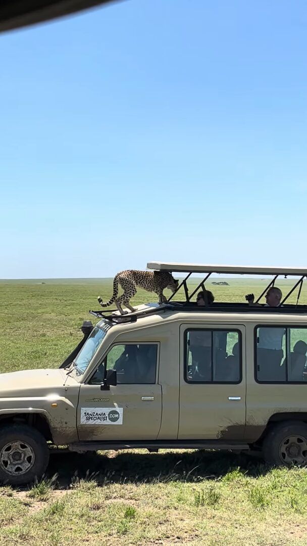 3. サファリツアー中の車のボンネットにチーターが!しかもさらに驚きの行動に!!