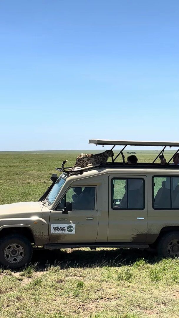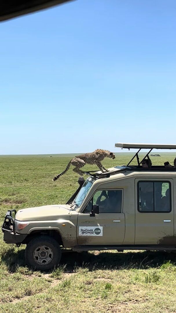 サファリツアー中の車のボンネットにチーターが!しかもさらに驚きの行動に!!