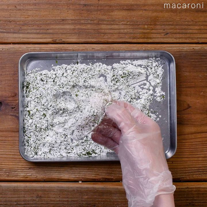 4: 全体に片栗粉と青のりをまぶします。