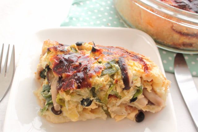 中は長ねぎときのこの茶碗蒸し風!キッシュなのに和風なおいしさ♪