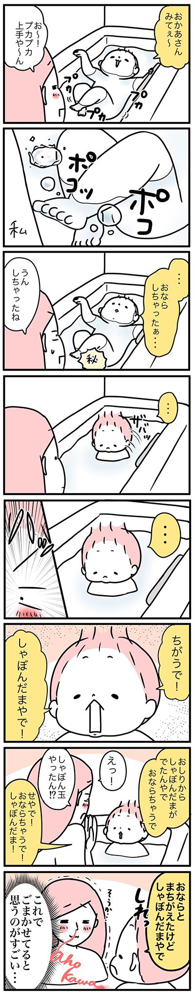 3. 4歳息子がお風呂でおしりから〇〇!? ごまかし方がアホかわすぎる