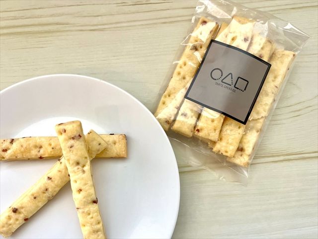 甘いものを食べていると、無性に塩気のあるものが食べたくなりませんか? そんなときにぴったりの焼き菓子が、サブレ・サレ(432円・税込)です。フレーバーは、オニオンチーズ、トマトバジル、コンソメサラミ、ごま塩の4種類あり、お酒のおつまみにもなる塩系クッキーとなっています。