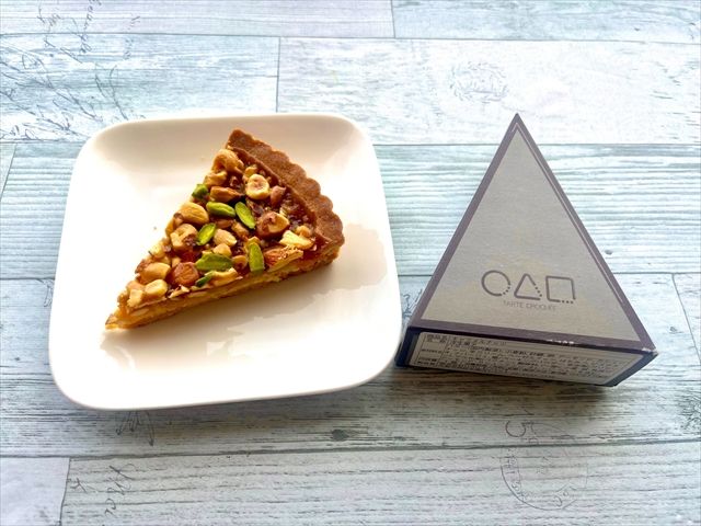 種類豊富なマルサンカクシカクの商品ですが、今回は一番人気のタルト「キャラメルナッツ」と、焼き菓子「コンソメサラミ」を実食ルポします。