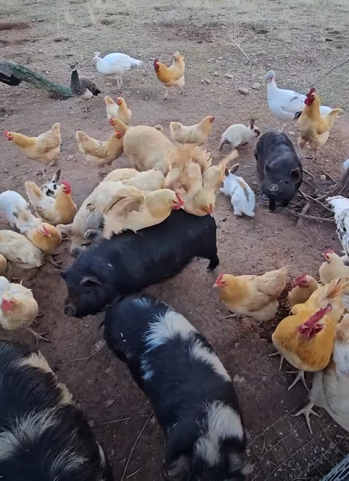 みんなでフェンスの前に大集合!ニワトリはブタの背中に乗ってみたい?【アメリカ・動画】