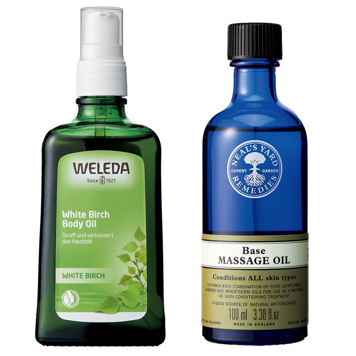 左:肌の引き締めやハリを保つのに効果的なシラカバ葉エキスやナギイカダ根エキスを配合。同時に肌のザラつきまでケア。ホワイト バーチ ボディオイル 100 ml ¥4,510(ヴェレダ・ジャパン)