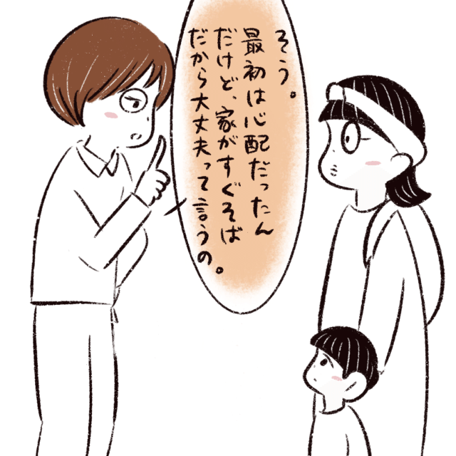 「そう。最初は心配だったんだけど、家がすぐそばだから大丈夫って言うの」