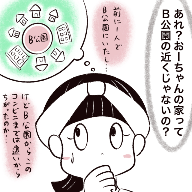 (あれ?おーちゃんの家ってB公園の近くじゃないの?前に1人でいたし・・・。)