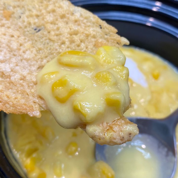 たっぷりのつぶつぶコーンとパリッとしたパルミジャーノチップの食感が楽しい1品です🌽