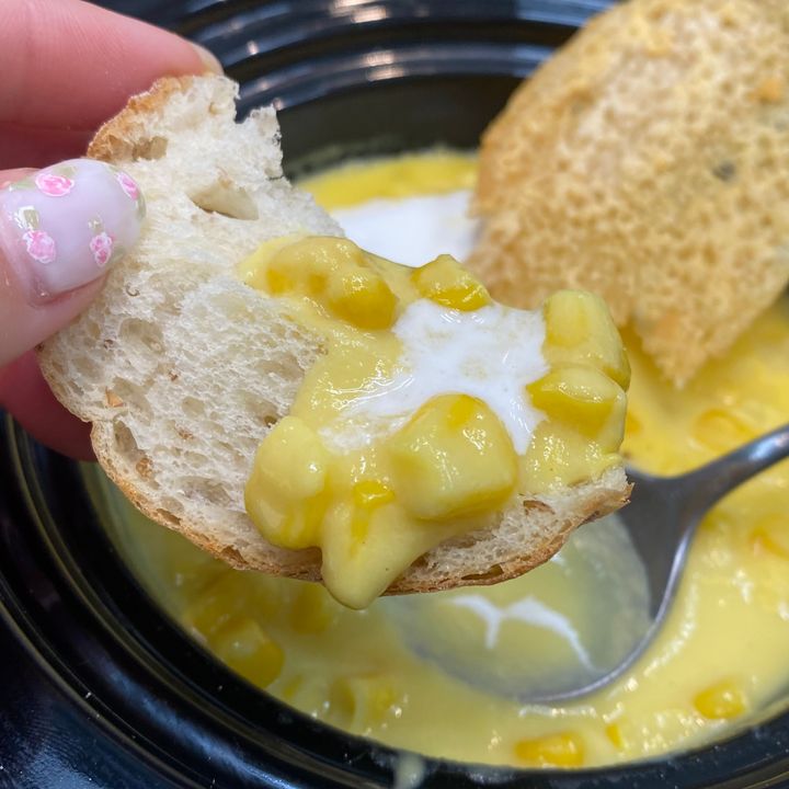 また、コーンスープにパスタを合わせて食べるのもまた新しい食感で違う味わいを体験できます✊🏻
