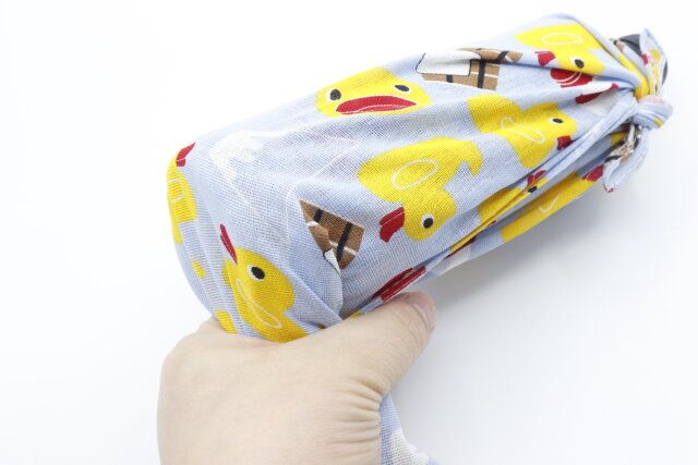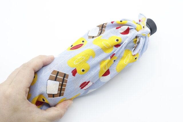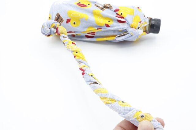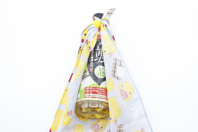 手ぬぐい風タオルが、簡単にペットボトルホルダーに変身しました。