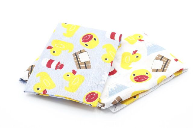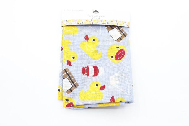 薄手で乾きやすいから温泉やサウナにぴったり♡セリアの『手ぬぐい風タオル アヒル柄』
