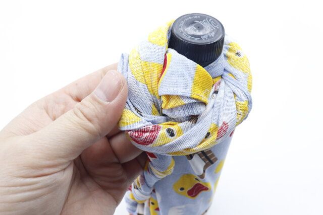 ねじった部分をペットボトルの首の部分に巻き付けて、キュッと結べば完成!