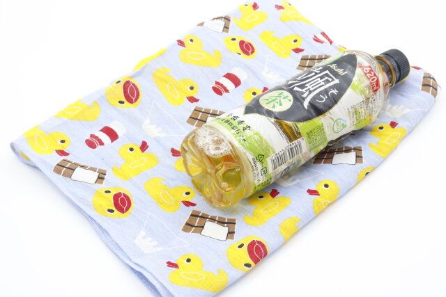 そのまま持ち運ぶと水滴などが気になる、冷たいペットボトルドリンクの持ち運びに役立つ方法です。