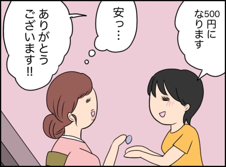コースケのアドバイスを元に安くてもいいからお金をもらい似顔絵を描くことにしたユメ。500円を受け取り、さっそくフク美の似顔絵を描き始めます。初めてのお客様に緊張とともに喜びが溢れているのが表情からも伝わってきますよね。
