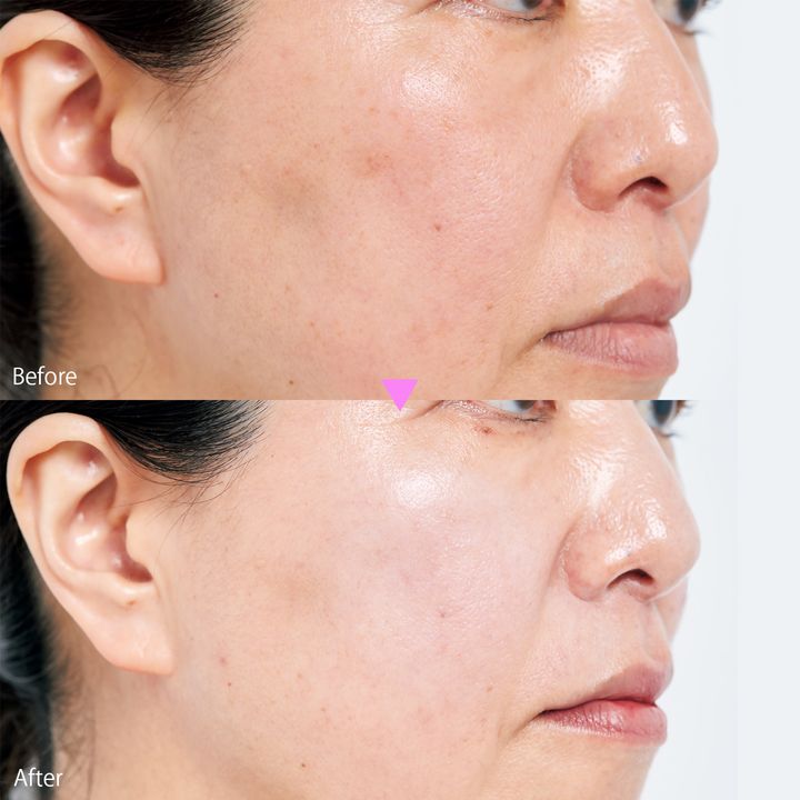 使用した次の朝に鏡を見て明るくなった肌にびっくり。右頰のもやもやジミ、肌のくすみ、乾燥など複合悩みには、全体の底上げが必要だとわかりました。メーク時間が短縮され、毎日のメークが楽しくなりました。