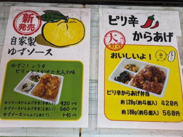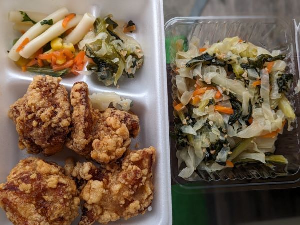 迷った結果、初来店なので人気ナンバーワンのからあげ弁当と、お惣菜を選んでみました。