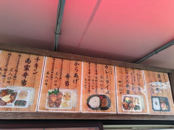 ひので屋は、福岡県を中心に、からあげ弁当、チキン南蛮弁当、カレーライス、日替り弁当を販売しているお弁当のテイクアウト専門店です。主なメニューはご覧の通り。