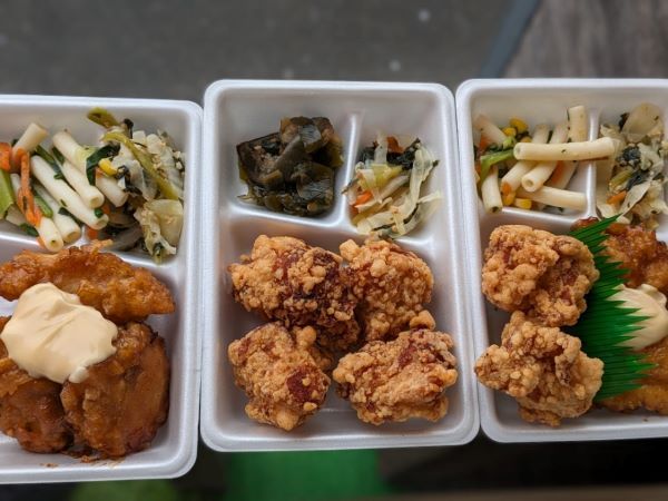 左から、チキン南蛮弁当、定番のからあげ弁当、ミックス弁当とどれもおいしそうです。