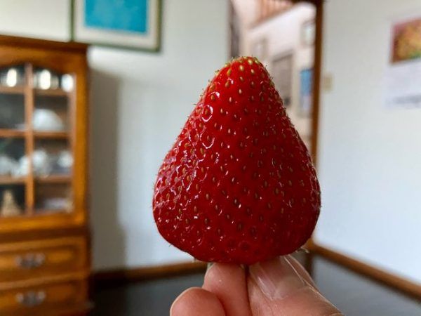 ご覧の通り、一粒が大きく重量感もあります。いちごを丹精込めて作った方々に感謝をしつついただきたいと思います。「良い香り。甘くて、甘酸っぱくて美味しい!!」そして名前のとおり「もういっこ」と食べてしまいました。