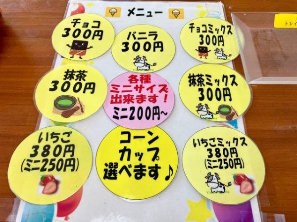 定番品は、バニラ、チョコ、チョコミックス、抹茶、抹茶ミックス(各300円)。