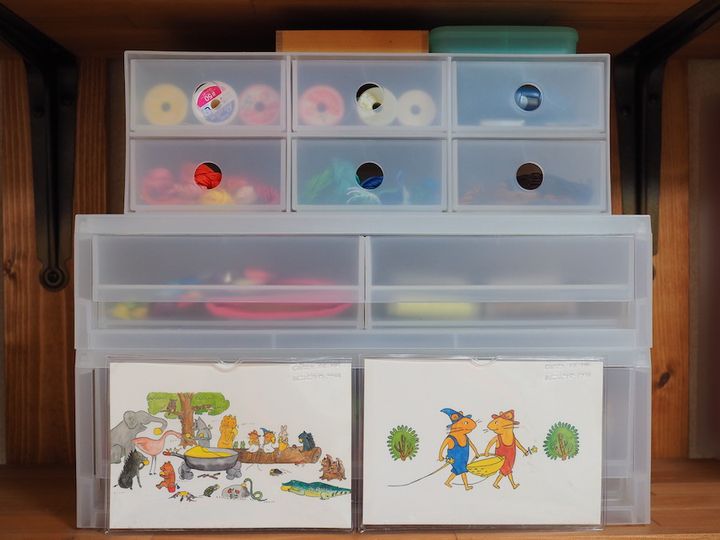 お気に入りの絵葉書や子どもの作品写真を入れたりして楽しんでいます。