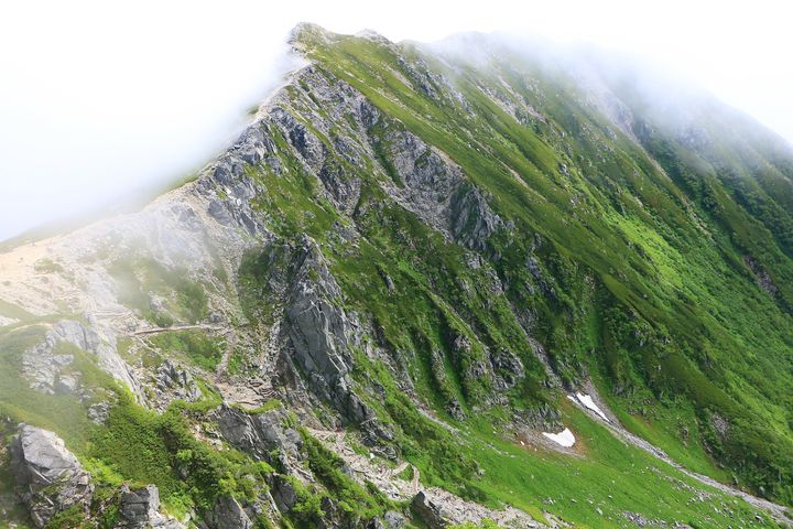 暑い夏でも天国のように涼しく、雲が切れて雄大に広がる山並みに感動。道中には色とりどりの高山植物が咲いており、夏の日本アルプスの魅力を満喫できる名山です。