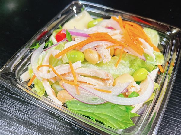 蒸し鶏と・豆・大根の愛称もバツグン ドレッシングも付いてて、お手頃価格なのもうれしいです