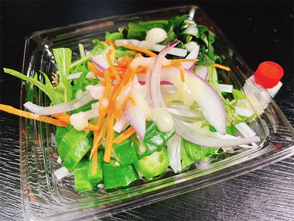 松の家特製ドレッシング付 夏バテ防止サラダ ¥200 蒸し鶏とビーンズのグリーンサラダ ¥200