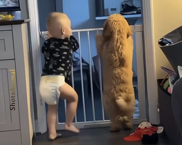 親友って呼んでもいいかも! 後ろ姿かわいすぎな赤ちゃんと犬さん。