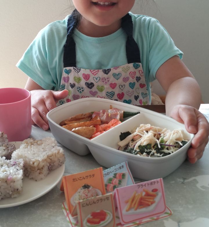 ちなみに主食のおにぎりは、マクドナルドのハッピーセットに付いていた、シナモロールのライス押し型を使いました。
