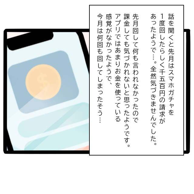 話を聞くと先月にもスマホガチャを1度まわしたらしく、1500円の請求があったようで・・・