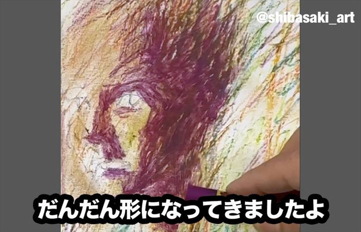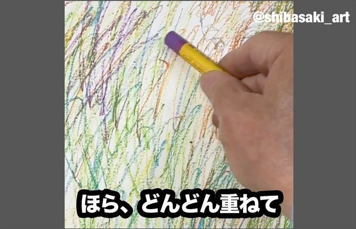 「サクラクレパスを使い倒したらどうなるか!?」とコメントを添え、サクラクレパスで描いた絵の作業工程の写真を公開されています。