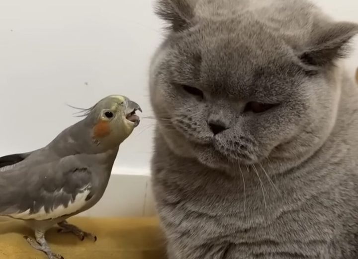 猫「ヒゲ食べないでよっ」 鳥さんのイタズラに困り顔!