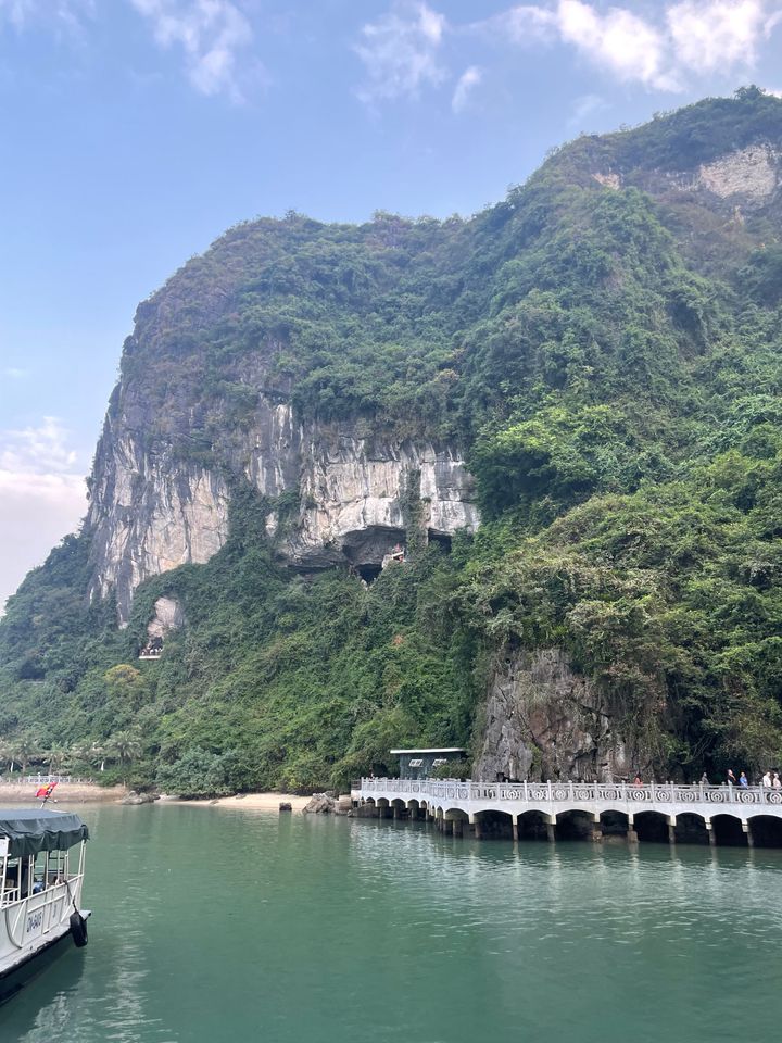ボートが洞窟をくぐり抜けて行く時、光が差し込んで海が光っていて綺麗でした😍