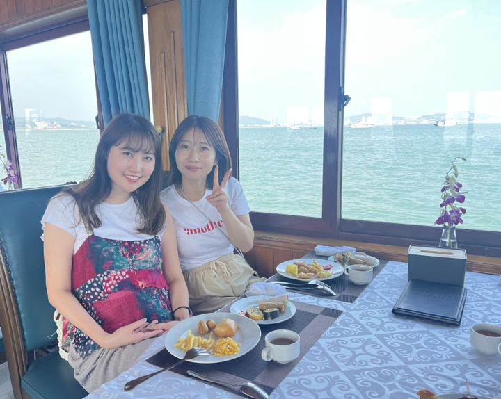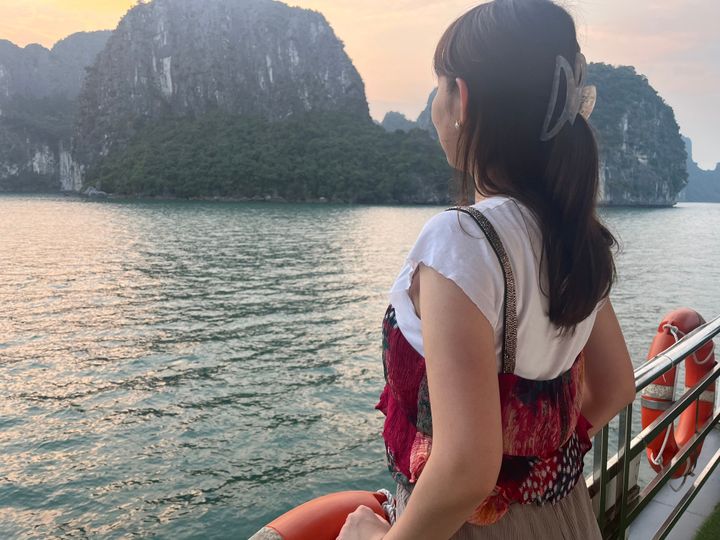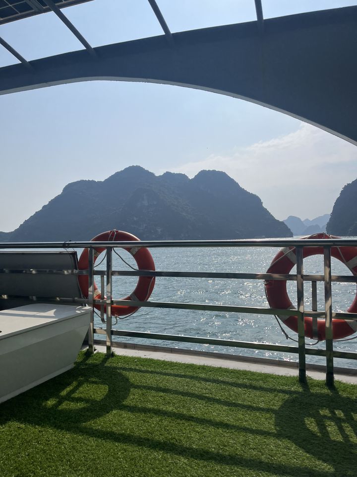 ご飯の時間以外は、2階のデッキにのぼって自由に楽しむこともできます🎵ゆっくり景色を眺めていたら、ハロン湾がいかに広い海なのかが分かりビックリしました。さすが世界遺産!空気も澄んでいて気持ちよかったです!