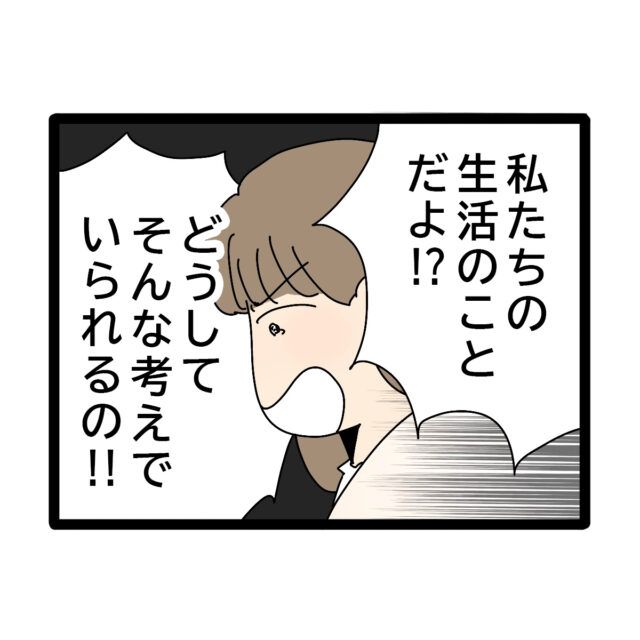 「私たちの生活のことだよ!?どうしてそんな考えでいられるの!!」
