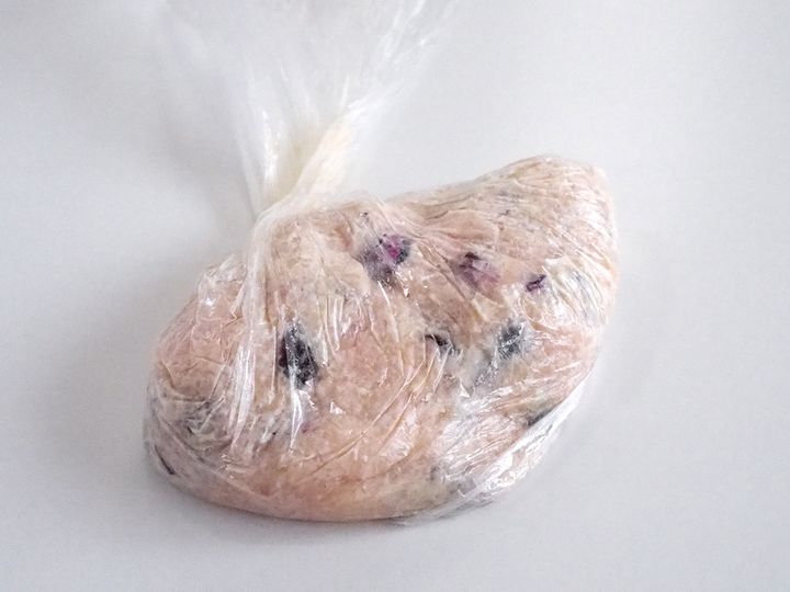 2. ポリ袋に1と残りの全ての材料を加えたら袋の上から揉む。