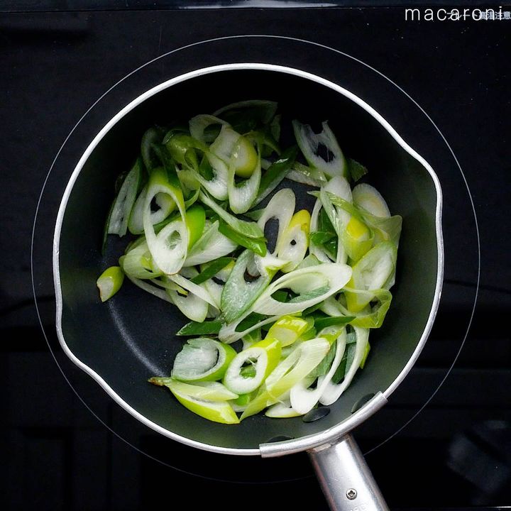長ねぎは香りが立つまで炒めることで旨みが出ます。