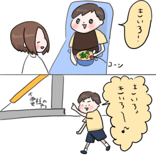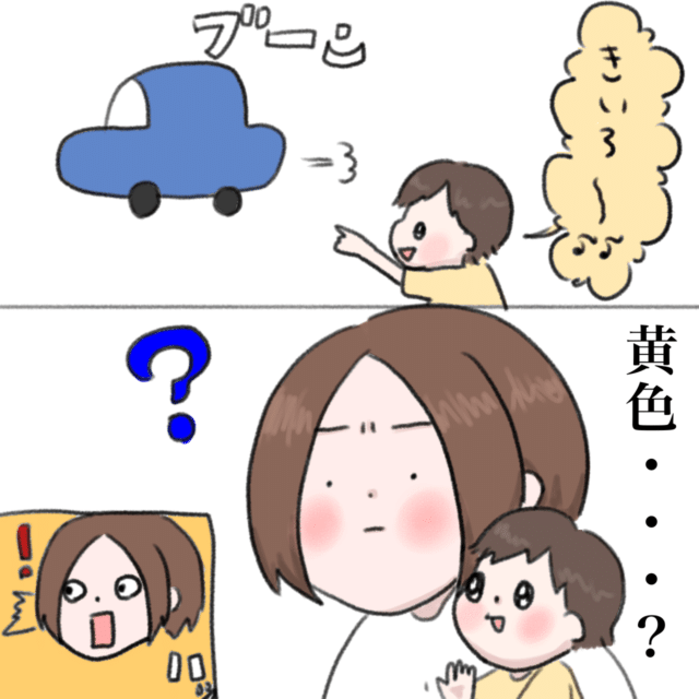 明らかに黄色じゃない車を指差してきいろ!って言っていて、何が黄色なんだろう・・・?って不思議に思っていたんですが