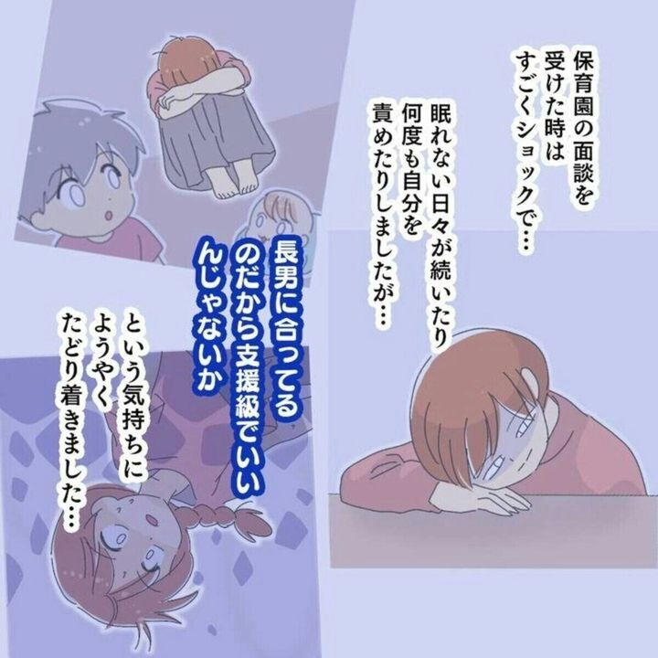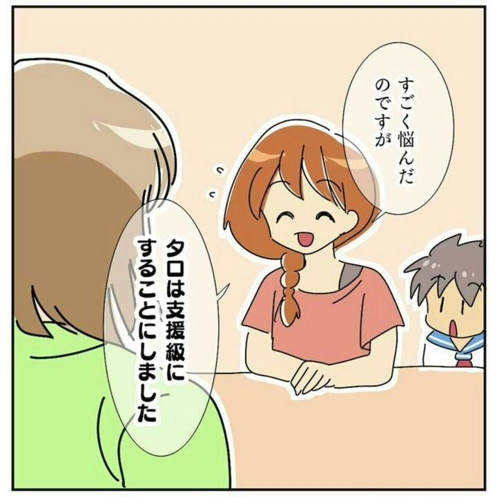 星河ばよさんも、タロくんが発達障害だとわかった当初は、自分を責め大きなショックを受けたといいます。しかし、療育に通う日々で職員との連携を取ることができ、タロくんとしっかり向き合うことができるように。そして、支援級に進学させるという結論を出すに至りました。
