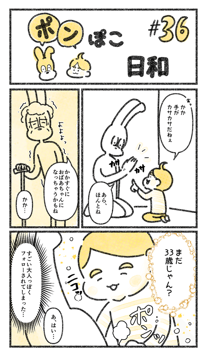 私の手がカサカサなことに気づいた息子。冗談で「すぐおばあちゃんになっちゃうかもね?」と言うと、すごくポジティブに「まだ33歳じゃん?」とフォローしてくれました…。まだまだ若い!お母さん頑張ります!と思いました(笑)。