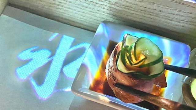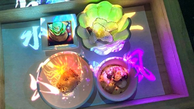 中でも、「世界」で現れた、日本の春を思わせるような華やかなプロジェクションマッピングが美しく、これから登場するお料理への期待とともに気持ちも盛り上がりました。