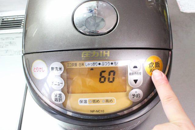 炊き上がるまで60分待ちます。炊飯中はあまりエビの香りはしませんでした。