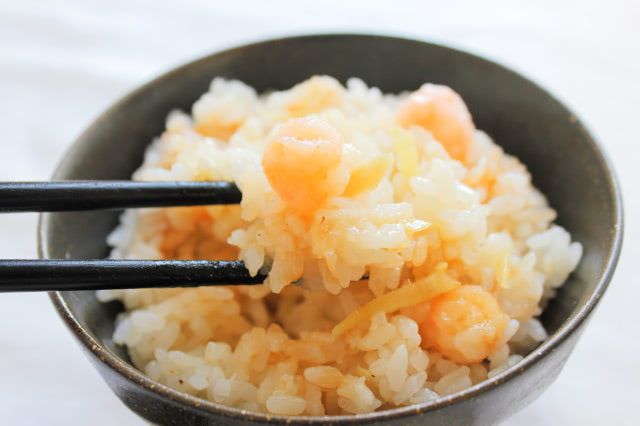 今回しょうが5gを千切りにして加えましたが、この量だとしょうがは控えめな味わいです。もう少し入れたほうがしょうがご飯らしくなりそうですが、この量でも十分エビの甘さが引き立っておいしいですよ。