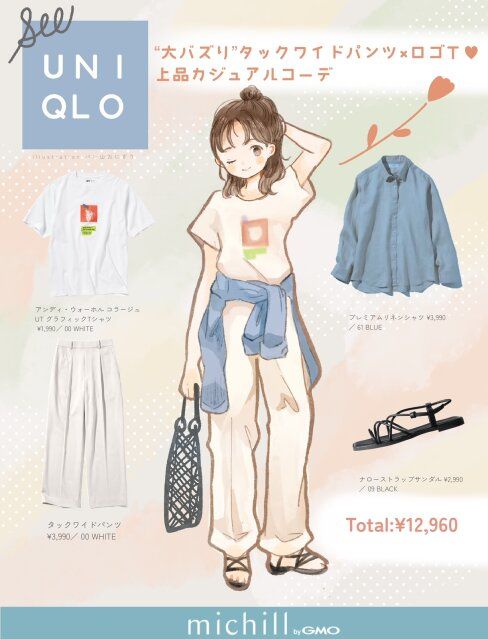 【ALL ユニクロ】“大バズり”タックワイドパンツ×ロゴT♡上品カジュアルコーデ