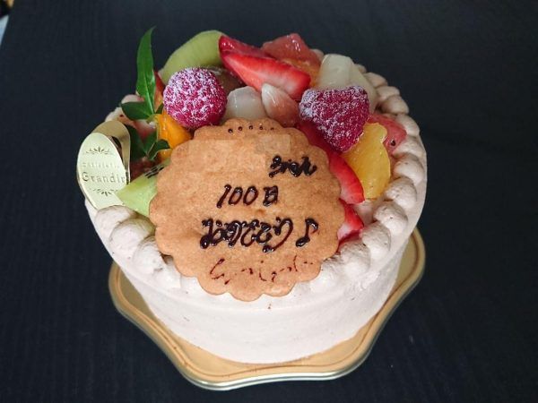 お祝いのメッセージを書いてもらうプレートは、チョコプレートかマジパンプレートと呼ばれる砂糖などでできた白いプレートが多いのですが、こちらのお店はなんとクッキーです。そして、このクッキーはお店の手作りです。実は、ホ―ルケーキでなくてもメッセージプレートを付けてもらえると教えていただきました。総額1800円以上のケーキ購入でメッセージプレートを付けてもらえます。1800円未満の場合はプラス50円になりますとのことです。カットケーキにもメッセージプレートを付けてもらえると特別感があって嬉しいですね。
