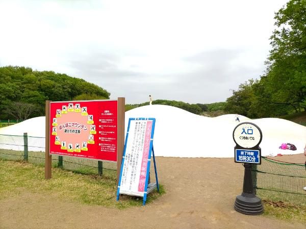 運動広場花畑周辺には、人気のトランポリン遊具「ぽんぽこマウンテン」があります。 GWは、たくさんの子供達で賑わいそうですね。