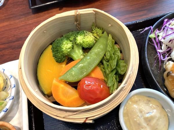 蒸籠蒸し御膳もありますが、チキンカツor魚餡掛けのどちらかを選ぶようです。オムライス御膳は蒸籠蒸し野菜が付かないようです。